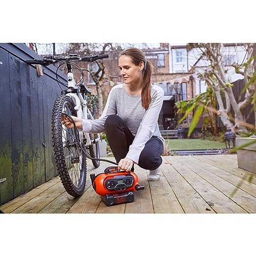 Black + Decker BDCINF18N-QS 160PSI AC/DC Multipurpose Cordless Tyre Inflator with Digital Guage, Autocut off system and 2 operating modes for Car and Home