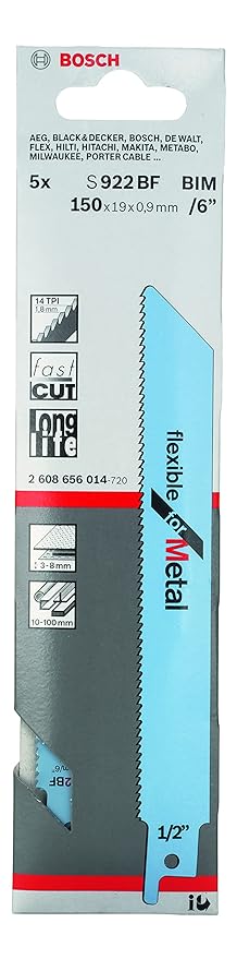 Bosch 2608656014 S 922 BF Sabre Saw Blades (Blue, Pack of 5)