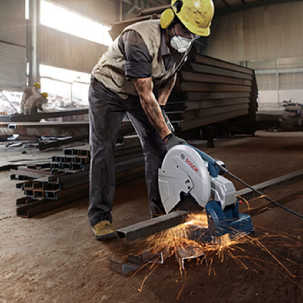 Bosch GCO 14-24 Heavy Duty Corded Electric Metal Cut Off Saw (14″ Chop Saw), 2,400W, 355 mm Cutting Dia., 3,800 rpm, 17 kg + 1 Bosch cutting disc, Expert for Metal, 355 x 25.4 mm, 1 Year Warranty