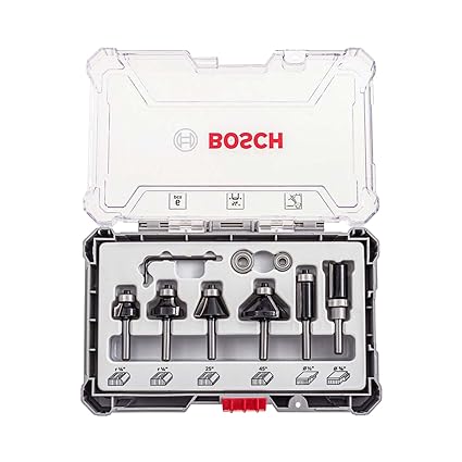 Bosch Professional 6 Pcs Router Bit Set With Trim & Edging Bits, 1/4″Mm Shank Bits, Suitable For Gkf 550 Plam Router