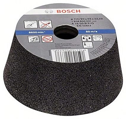 Bosch Professional Conical Cup Wheel Suitable For Metal And Cast Iron, Min Dia - 90Mm, Max Dia - 110Mm, Height- 55Mm, 16 Grit, Pack Of 1