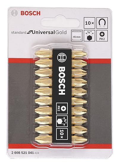 Bosch Professional Extra Hard, Double Ended Screwdriver Bits, Type Ph2-Ph2, Length 45mm, Gold, Pack Of 10