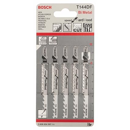 Bosch Professional Jigsaw Blades T 144 Df, Speed For Hardwood, Blade Length 100Mm, Suitable For Ground Hardwood And Softwood (5-50 Mm), All Types Of Laminates, Pack Of 5