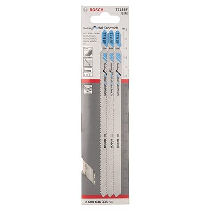 Bosch Professional Jigsaw Blades T 718 Bf, Flexible For Metal Sandwich, With Blade Length 180Mm, Pack Of 3