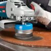Thicker wires are more aggressive, producing a coarser yet faster surface finish, while thinner wires deliver finer, smoother surface results. It is intended for use with angle grinders with an M14 thread.