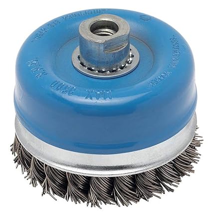 The Heavy for Metal Wire Cup Brush provides an extra-coarse surface finish. This cup brush is fitted with knotted wire for heavy-duty cleaning applications.