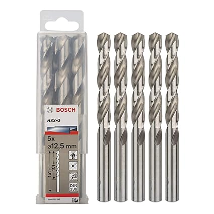 Bosch Professional Metal Drill Bits HSS-G, DIN 338, 12.5mm, Working Length- 101mm, Total Length- 151mm, Pack Of 5