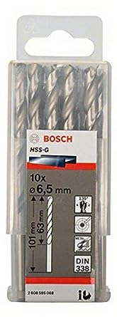 Bosch Professional Metal Drill Bits HSS-G With Diameter 6.5mm, Working Length- 63mm, Total Length- 101mm, Pack Of 10