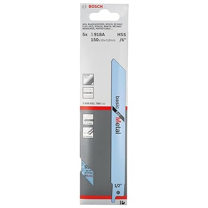 Bosch Professional Reciprocating Saw Blades, For Metal, S 918 Af, Blade Length 150Mm, Suitable For Thin Sheet Metals Of 1-3 Mm, Closed Pipes/Profiles (Dia<100 Mm), Pack Of 5