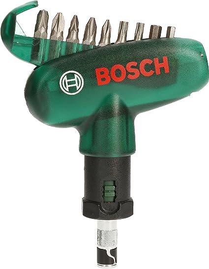 Bosch 10 Piece Pocket Screwdriver Bit set includes a manual screwdriver and is equipped to handle virtually any task. High-grade screwdriver bits for screwdriving the most commonly used screws with Phillips, Pozidriv, hexagon socket and Torx heads.