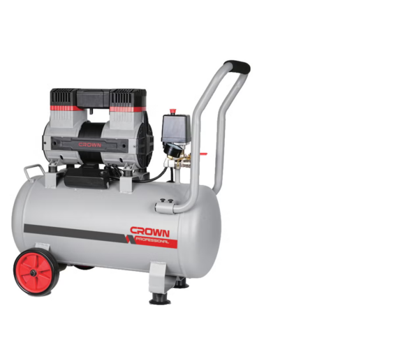 The Crown 50-liter silent air compressor is a powerful device designed to meet the needs of industrial and home use. It features a powerful motor that ensures smooth start-up even under low voltage conditions. It operates oil-free, providing a clean environment and reducing the need for maintenance. Thanks to its air pressure control feature, it can be used for a variety of tasks such as auto repair and operating pneumatic tools.