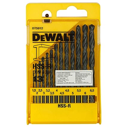 DEWALT DT5912-QZ HSS 1.5mm/2mm/2.5mm/3mm/3.2mm/3.5mm/4mm/4.5mm/4.8mm/5mm/5.5mm/6mm/6.5mm Metal Drill Machine Bit Set (Pack of 13)