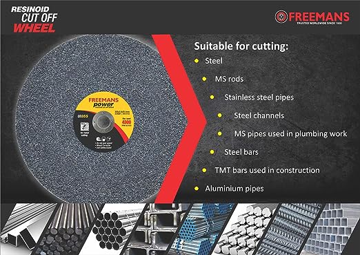 COMPATIBLITY: Cuts all metals, such as steel, Steel Channels, angle iron, and other Ferrous metals, MS pipes used in industries, TMT bars used in construction. Compatible with All 14” Chop Saw Machine with 25.4mm or 1'' Spindle.