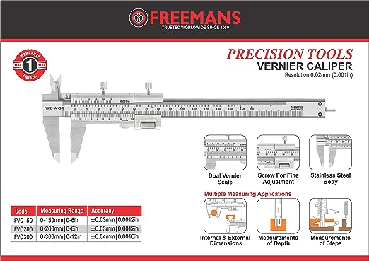 FREEMANS FVC150 Vernier Caliper with hardened stainless steel body (0-150mm | 0-6Inch)