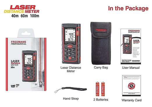 1-YEAR WARRANTY CARD. The laser distance meter is portable and comes complete with Laser Meter, Carry Pouch, Sling, Instruction Manual, Batteries and Warranty card