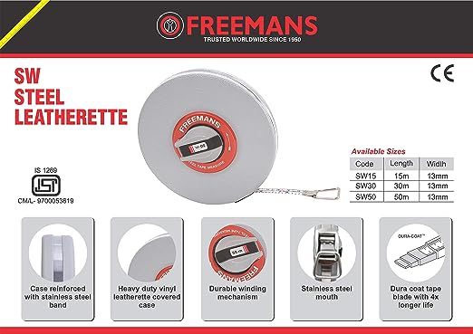 FREEMANS SW15 Steel Leatherette 15 m:13 mm Measuring Tape