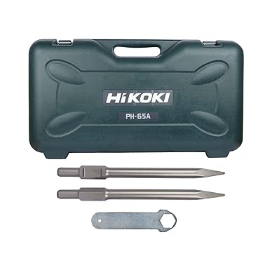 HIKOKI PH65AS9Z- Demolition Hammer with 30mm Hexagon Bit Shank, 1400W, Heavy Blow Chipping Mechanism, 15 Kg, Bull Point, Side Handle, Wrenches, Oil Feeder, Carrying Case Included