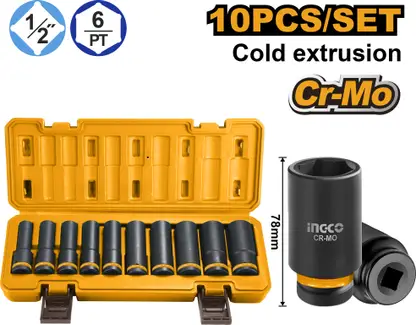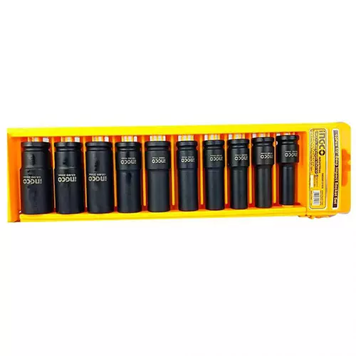 INGCO 10pcs 1/2" Deep Impact Socket Set, Cr-Mo Material (HKISSD12102L)