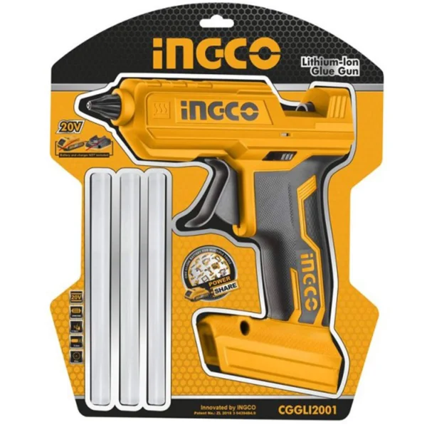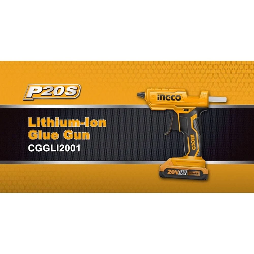 INGCO (CGGLI2001)11.2 mm Lithium-Ion Cordless Glue Gun 20 V, with 3 Glue Stick Without Battery and Charger