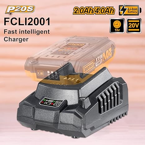 INGCO 20V Fast Intelligent Charger, Serving Only INGCO Series 1.5Ah, 2.0Ah, 3.0Ah, 4.0Ah and 5.0Ah Batteries, Compatible with All INGCO 20V Power Tools
