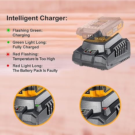 【Charging Efficiency】You can expect a 2.0Ah battery to charge in 1H, a 4.0Ah battery to charge in 2H; a LED indicator helps you know the battery status conveniently.