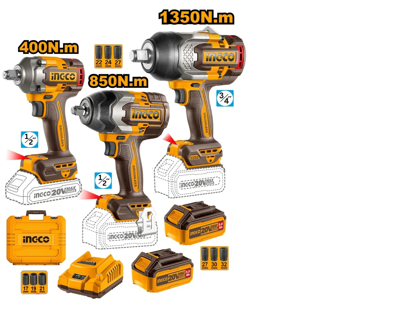 Ingco 3-Pcs 20V Cordless Impact Wrench Combo Kit | A to Z Shop
