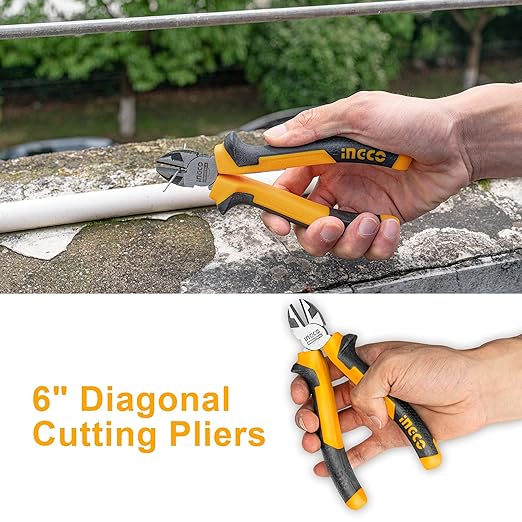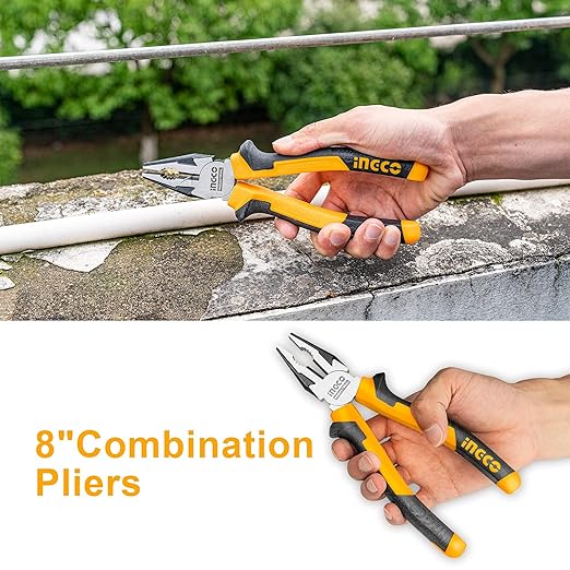 【What You Can Get】3pcs Pliers Tool Set : 8" Combination Pliers; 6" Diagonal Cutting Pliers; 6" Long Nose Pliers Wire Cutters Plier. 【High Material】 Made of High quality Cr-V steel, black finish and polish, with overall heat treatment, induction hardened 55-65 HRC Ensure tools durability to withstand extended daily uses ! 【MutiI Usage Tool】INGCO 3 pcs pliers meet your wide cutting need. Three most useful utility pliers for general household, garage, shop, handyman, linesman and electricians. 【Anti Slip Design Handle】Equip with INGCO TPR two color handle, non-slip and wear-resistant, suitable for long-time work. A comfortable grip for reduced hand fatigue can give you more strength to improve efficiency while your working. 【Strong Cutting Force】 A solid cutting edge makes wire cutters more durable, increasing the lifespan compared to others. Special finish of cutting-edge, strong cutting force.