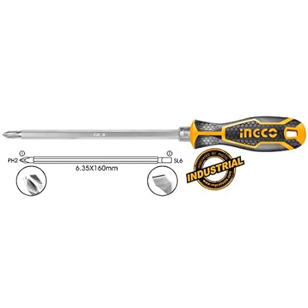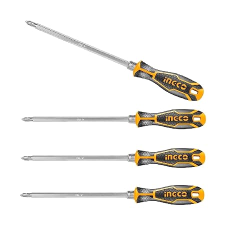 Ingco 4PCS PACK 2 IN 1 Screwdriver Set, CR-V | 6.35X160MM, PH2+SL6, Screwdriver Kit for Home Use, Screwdriver with Hanging Hole Design with 4 pcs Interchangeable Handle