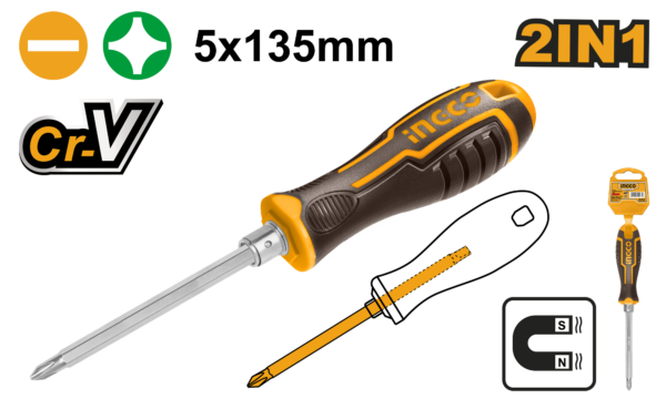 The Ingco AKISD0203 5X135mm CR-V Black Multipurpose Portable Screw Driver is a versatile tool designed for both professional and DIY use.