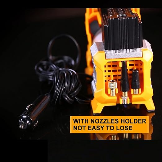 【PRODUCT HIGHLIGHTS】:With nuzzle holder, not easy to loss nuzzles. Equipped with integrated LED flashlight with independent switch control for emergency use; a 12V battery clamp and 3.0 meters long heavy-duty car cigarette lighter cord make it convenient to use; NOT a 110V AC plug. It needs a 10A or 15A converter to use in a wall plug.