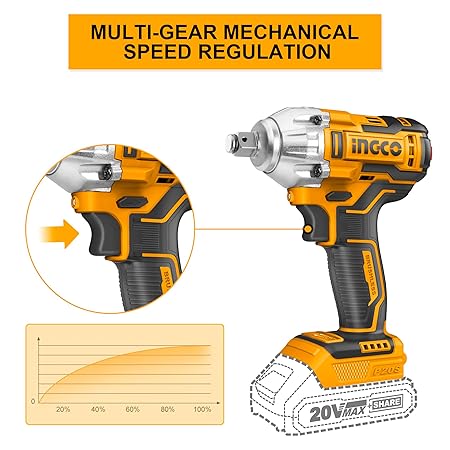Ingco Brushless Impact Wrench, 20V Lithium-Ion Cordless Impact Wrench, 1/2 Inch | 300NM | Cordless Impact Wrench with 2PCS Sockets, 2 Batteries, 1 Charger
