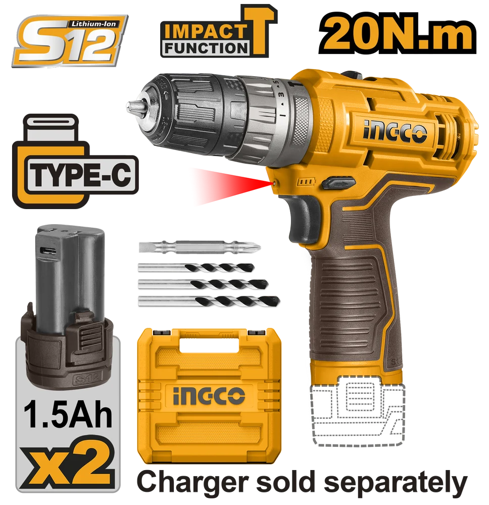 Upgrade your toolkit with the Ingco CIDLI12202 Cordless Impact Drill for its precision, power, and practical features, designed to handle diverse drilling tasks with ease.