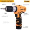 INGCO CIDLI1232 Lithium-ion Impact Drill 20 NM Cordless 18+1+1 Torque Settings 1500 RPM Speed 1.5 Ah Battery 2 Speed Gear with CR-V Bits LED Light for Home Improvement & Industrial Use