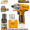 Ingco CIRLI12015 12V Cordless Impact Driver with 100Nm Torque, Dual 1.5Ah Batteries, and Carrying Case
