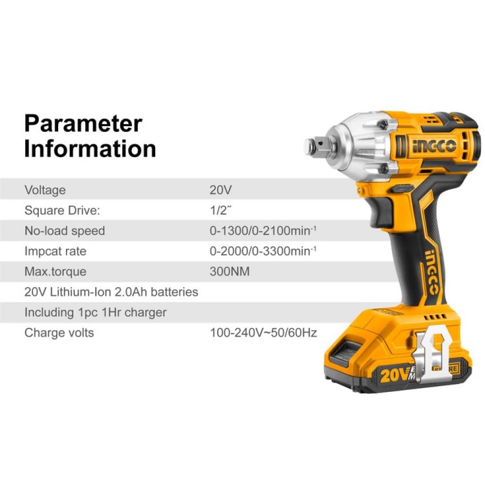 【300N.m High Torque (300Nm) for driving large fasteners and tough sockets. You can change the speed of the impact power wrench cordless with the pressure you apply to the trigger.
