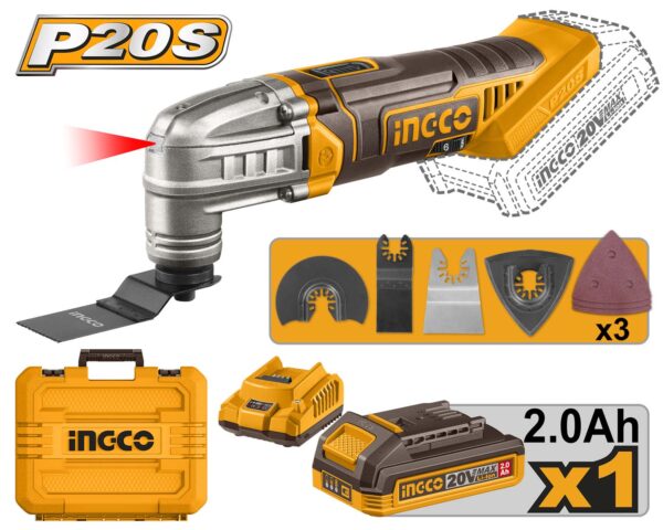 Ingco CMLI20228 20V Cordless Oscillating Multi-Tool With Battery, Charger & Accessories