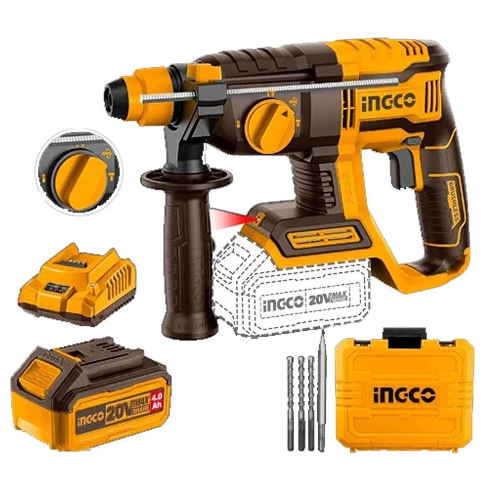INGCO Cordless 20V Rotary Hammer with Brushless Motor , CRHLI202081 Battery charger Included