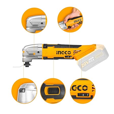 INGCO Cordless Multi-Tool Lithium-Ion Compact 20V DIY Oscillating Multi-Tool with 8Pcs Accessory Kit (Body only) for Cutting/Sawing/Polishing/Grinding
