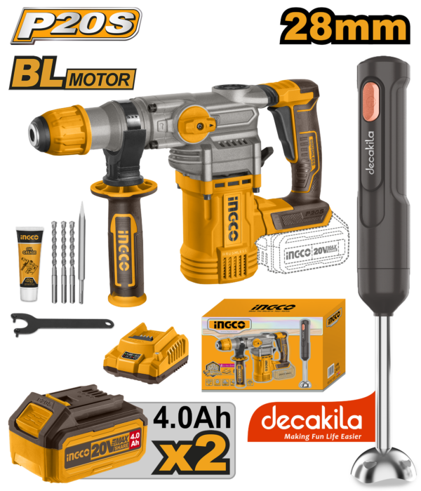 Ingco 2PCS Lithium-Ion 20V Rotary Hammer with 60W Cordless Hand Blender Combo Kit COSLI231001 - IPX