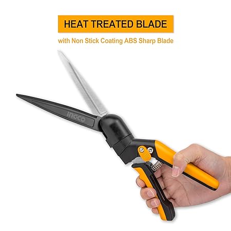 INGCO Grass Cutter, 340° Grass Trimming Shears, County Tools, Heat Treatment w/non Stick Coating, Strong Spring Mechanism | Simple & Secure Safety Lock for Grass