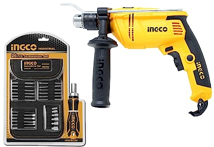INGCO Heavy Duty 13MM Impact Drill with INGCO 26 in 1 Ratchet Screw Driver Set