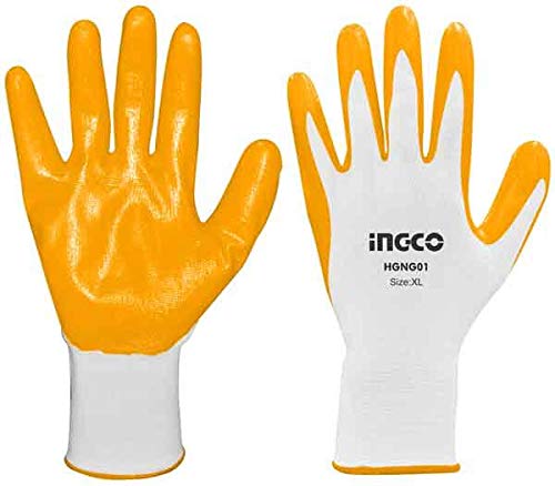 Ingco Heavy Duty Nitrile Anti-Skid Safety Work Gloves For Mechanic, Industrial Assembly Line, Field Work-(2 Pairs)
