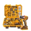 1 Pcs 20V cordless impact drill(CIDLI206681), 1 Pcs 2.0Ah battery pack (FBLI20011 ), 1 Pcs charger(FCLI2001 ), Charge volts: 220V-240V~50/60Hz, Max impact rate: 22500bpm, 1 Pcs 8oz claw hammer, 1 Pcs SL5.5x100 screwdriver, 1 Pcs PH1x100 screwdriver, 1 Pcs 10 inch water pump pliers, 1 Pcs 7 inch combination pliers, 1 Pcs 6 inch long nose pliers, 1 Pcs 8 inch adjustable wrench, 1 Pcs test pencil, 1 Pcs 3m steel measuring tape, 1 Pcs snap-off blade knife, 1 Pcs 1/4 inch 100mm magnetic shank, 1 Pcs 4mm precision screwdriver handle, 10 Pcs precision screwdriver bits:SL1.5,SL2,SL3,PH000,PH00,PH0,T6,T8,H1.5,H2.5, 1 Pcs 5.5 inch electrician's scissors, 1 Pcs mini hacksaw frame, 8 Pcs Hex key:1.5,2,2.5,3,4,5,5.5,6mm, 5 Pcs masonry drill bits 4,5,6,8,10mm, 5 Pcs twist drill bits 2,3,4,5,6mm, 4 Pcs wood drill bits 4,5,6,8mm, 20Pcs screwdriver bits, SL3,SL4,SL5,SL6,PH0,PH1,PH2,PH3,PZ0,PZ1,PZ2,PZ3,T10,T15,T20,T30,H3,H4,H5,H6, 10Pcs screwdriver bits:SL4,SL5,SL6,PH1,PH2,PH3,T10,T15,T20,T30, 7 Pcs power sleeve (Cr-V): 5,6,7,8,9,10,11mm, 1 Pcs magnetic bits holder, 40 Pcs screws(22pcs*ST3.5,10pcs*ST4, 8pcs*ST5), 40 Pcs plastic plugs(22pcs*5mm,10pcs*6mm,8pcs*8mm), Packed by carrying case