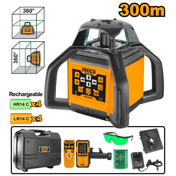 The Ingco HLRL30051 Self-Leveling Rotary Laser Level is a powerful and precise tool designed for accurate leveling and alignment in construction and surveying applications. Whether you’re a professional contractor or engaged in outdoor projects, this rotary laser level offers reliable performance.