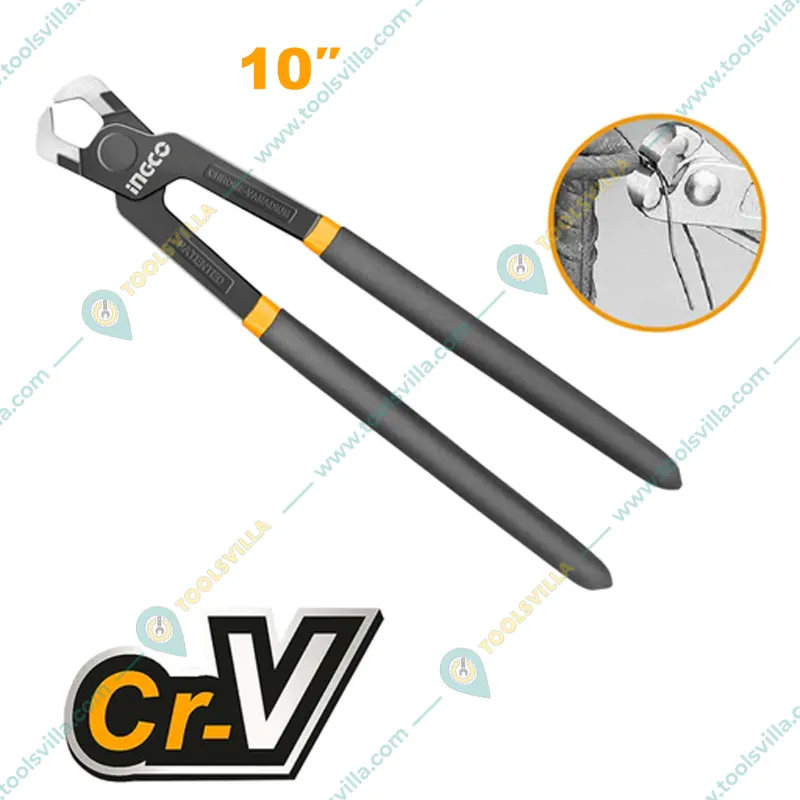 INGCO Rabbet Pliers, 10″/250mm Cr-V, Black Finish and Polish, with Extended Handles for Longer Reach