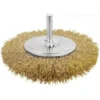 Brand INGCO Model Number WB40501 wire weels wire: 0.35mm, Shank dia: 6.35(1/4 inch) Type Wheel Brush Handle Material Iron Bristle Material Cast Iron, Iron Wire Type Crimped Brush Tip Type Continuous End Shape Round Replaceable Wire Head No Color Brown Net Quantity 1