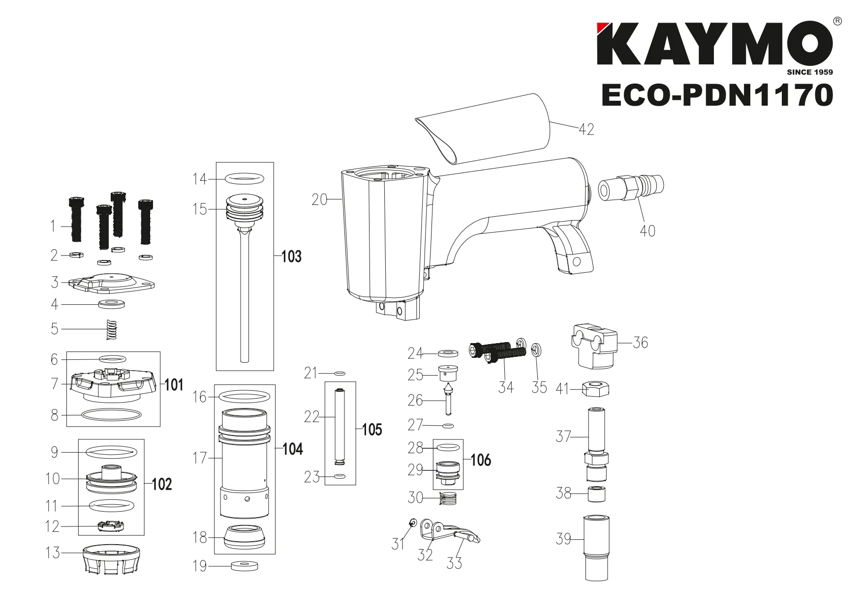 The Kaymo ECO-PDN1170 is a compact, high-performance pneumatic decorative nailer specially designed for precision decorative work in furniture and upholstery applications.