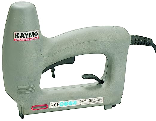 This portable tool features a power ON/OFF switch button, a built-in safety trigger for secure operation, an easy loading and unloading catch, and a staple viewing window for convenience. It is compatible with fasteners ranging from 6–16 mm and is ideal for a variety of applications. In sofas, it is used to fix 3mm or 4mm veneer to wooden frames and attach upholstery and elastic bands. In chairs, it helps fix upholstery to chair or stool bases. In modular kitchens, it is suitable for attaching fabric to MDF, particle board, or plywood tiles. It is also effective for fixing netted pockets on carrom boards, securing canvas to wooden frames for artist's canvases, and attaching screens to wooden frames in screen printing. All spare parts and servicing are available at Kaymo, and the product comes with a 6-month warranty on manufacturing defects. Built for reliability and user comfort, this tool offers excellent control and durability, making it ideal for both professional and DIY use. It is designed to reduce fatigue while maintaining precision and safety.