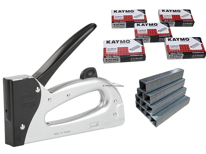 Kaymo Hand Tacker M-10 Metal Body 6-10mm with Stapler Pin 23/8-H Heavy Duty Staple Pins 23 Series H - 8mm - Pack of 5 (Staples Pins 5000)