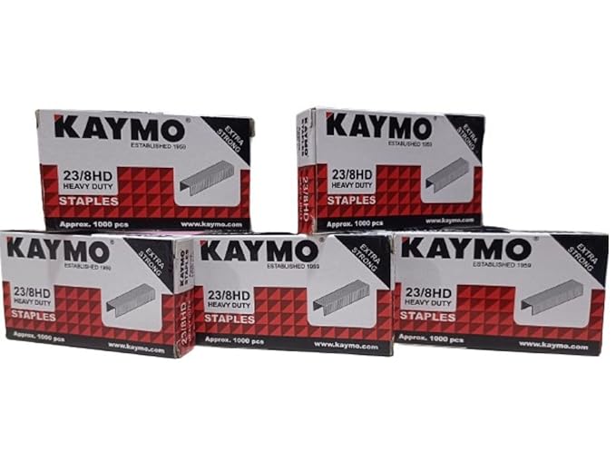 Bundled with 5 packs of Kaymo’s 23/8-H heavy duty staple pins (5000 staples total), this kit delivers both quality and quantity. These 23 Series H pins (8mm leg length) are engineered for binding up to 50 pages or use on soft materials such as cardboard, paper stacks, fabric, and lightweight boards.